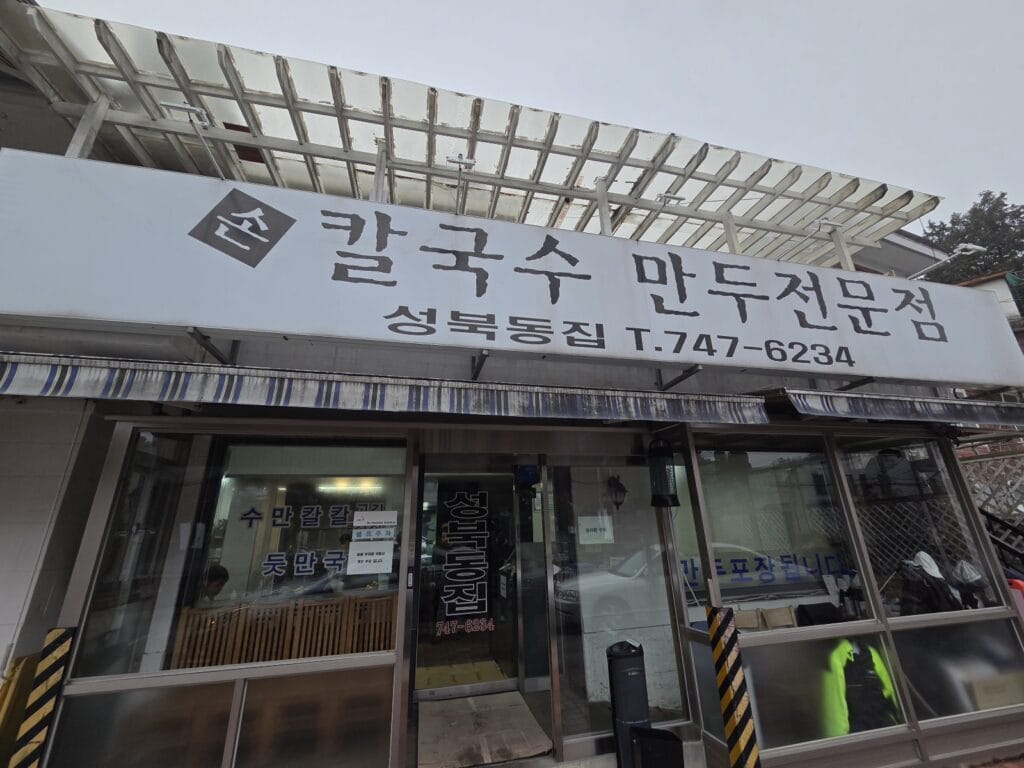 After a peaceful walk, it’s time to eat like a local. Just down the road is Seongbukdong-jip, a restaurant that represents the pinnacle of Korean comfort food: Kalguksu (Knife-cut noodles).