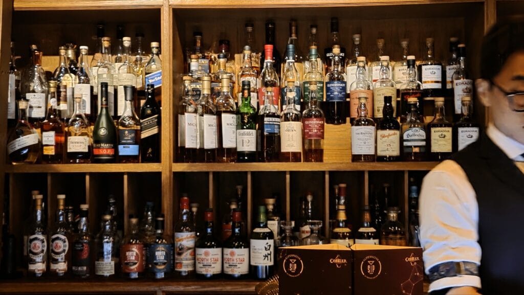 You can say things like “I want something fruity but strong” or “I want a smoky whisky.” They will pick the perfect bottle for you. It feels so personal, like a private consultation.