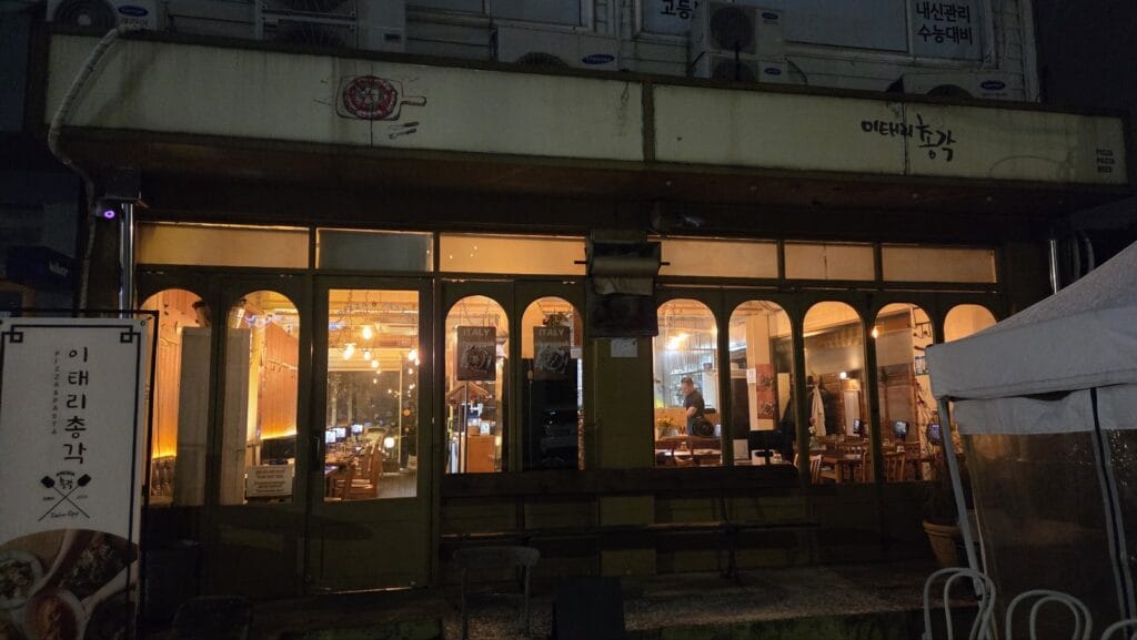 If you are looking for a Michelin-star Italian experience in Seoul, keep walking. But if you are in Seochon, it’s snowing (or raining, or you’re just sad and cold), and you want a cozy, unpretentious spot to grab a slice and a cheap beer? Italy Chonggak is a safe bet.